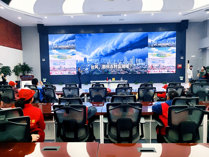 在五樓科普區,一場關於極端天氣的科普課堂拉開帷幕。工作人員通過圖文並茂的展板和動態演示,向小記者們講解了龍卷風的形成過程、衛星遙感的氣象知識,以及洋流和臺風的形成機制。孩子們目不轉睛地盯著屏幕,跟隨工作人員的講解在腦海中構建起宏大的地球氣象圖景。
