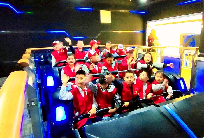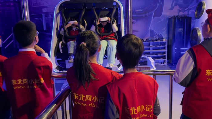 最令人屏息的體驗在飛行影院上演。無需佩戴設備,小記者們便隨畫面『騰空而起』,以雄鷹視角穿越松花江畔,掠過索菲亞教堂的穹頂,俯矙太陽島雪博會盛景。身臨其境的震撼引得驚呼連連:『太美了!原來家鄉這麼酷!』